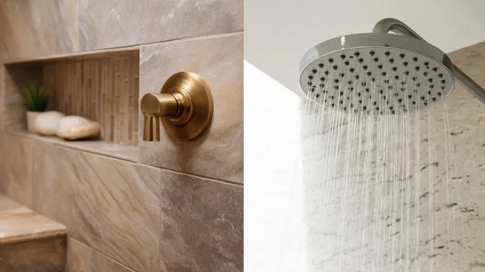 Nichos embutidos bem posicionados facilitam o acesso a produtos sem comprometer a estética do ambiente. Duchas duplas podem ser consideradas em projetos maiores, especialmente em suítes compartilhadas, oferecendo praticidade e conforto simultaneamente.