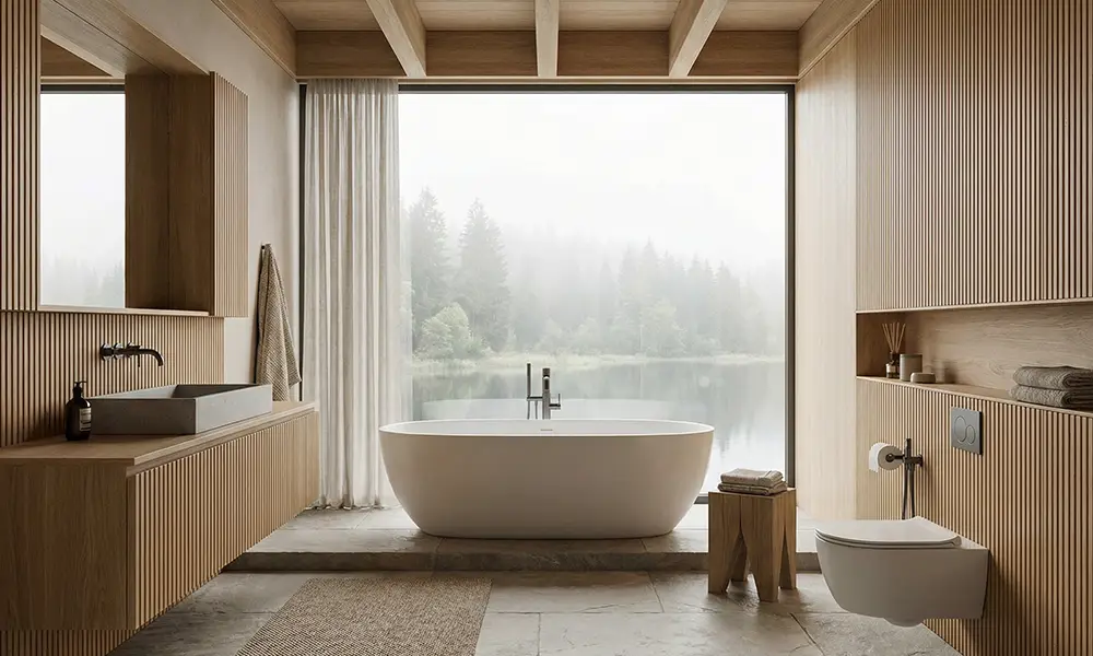 É nesse contexto que surge o conceito de sala de banho. Mais do que um banheiro ampliado ou visualmente sofisticado, a sala de banho propõe uma nova relação com o ambiente. O banho deixa de ser um hábito automático e passa a assumir o papel de ritual: um momento de desaceleração, cuidado e reconexão consigo mesmo, integrado à arquitetura e ao design do espaço.